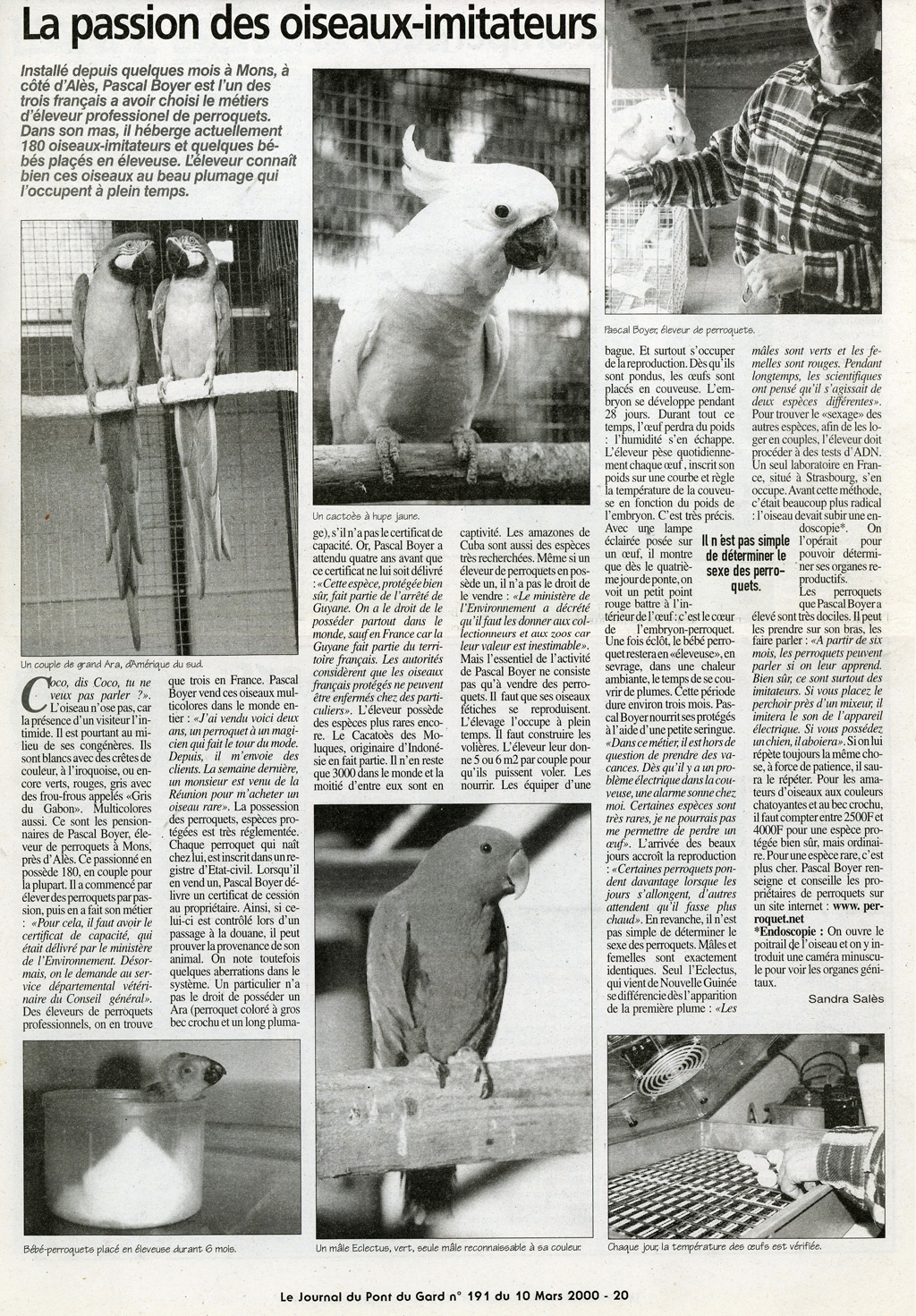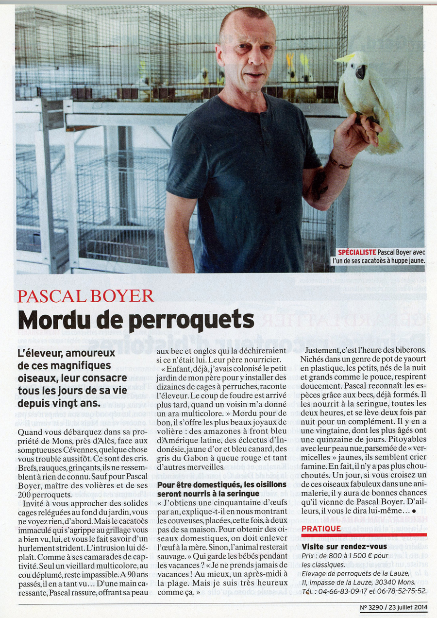 Un éleveur passionné de perroquets installé à Mons, près d’Alès. Il est l’un des rares éleveurs professionnels en France, avec environ 180 oiseaux dans ses volières.